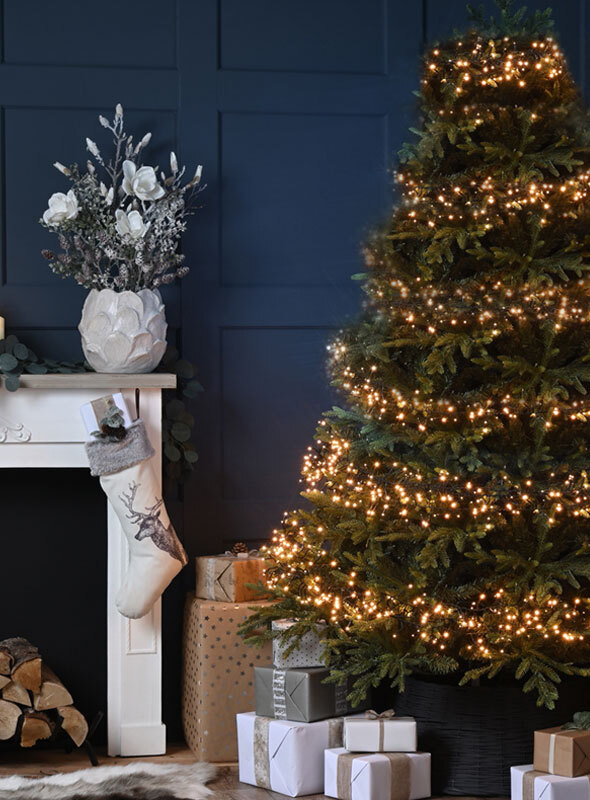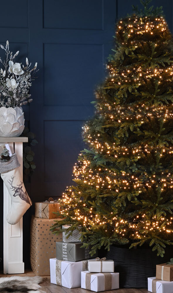 Festive Indoor & Outdoor 8ft Christmas Tree Glow-Worm Lights 1500 Jolly Holly LEDs