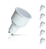 A value pack of 5 LED replacement for long barrel halogen GU10 spotlights. This LED long barrel GU10 light bulb is constructed from a thermal plastic body to mimic the shape and size of long neck a halogen GU10 lamp. Features the latest LED SMD (surface-mounted diode) technology.